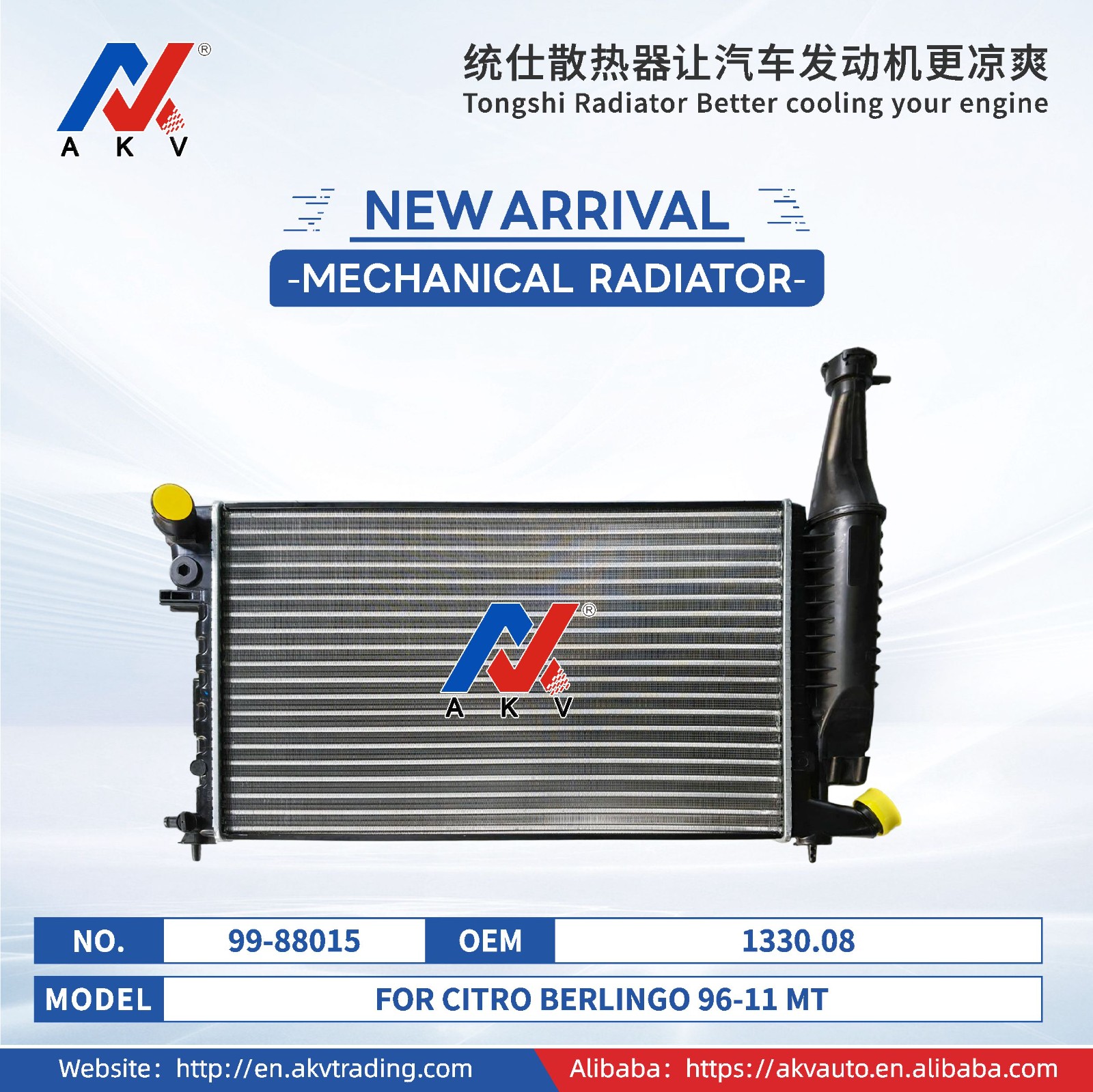 鑫统仕深耕行业多年,我们深谙核心部件自主化生产的重要性。其中,散热产品所需零部件塑胶水室 、气室,从2016年起自主研发生产,不仅把交期压缩到15-20天,更在仓库常备40万支现货,日/美/韩/德等车系全覆盖,真正做到订单秒响应,同时我司水室耐高低温、抗酸碱的硬核特性,让每个零件都经得起极端环境考验。